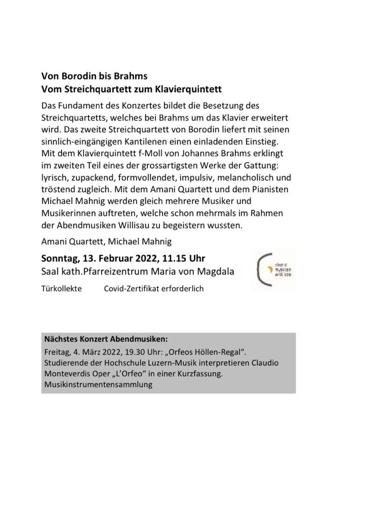 Abendmusiken Willisau, Von Borodin bis Brahms
